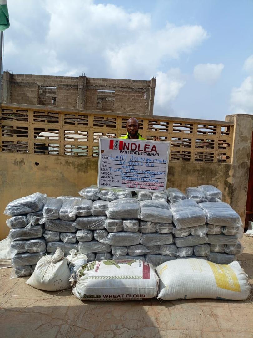 In Ekiti state, a total of 466.8 kilograms of skunk were recovered from the house of a suspect Layit John Matthew, 56, at Ilaro street, Isinbode-Ekiti, from where he planned to transport them to Yola, Adamawa state while 20,000 kilograms of the same psychoactive substance were destroyed on eight hectares of farmland in Uyanga community, Akamkpa LGA, Cross River state on Saturday 25th April when NDLEA officers supported by soldiers raided the community and recovered 170kg of processed cannabis.