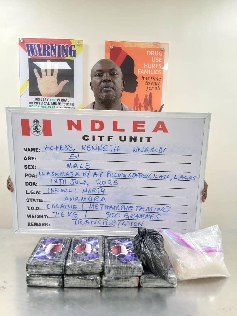 After 7 years on the run, NDLEA arrests wanted drug lord with 11.6kg cocaine, meth+Photos