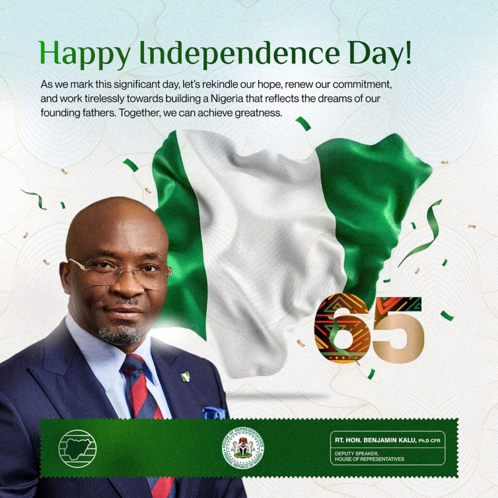 The Deputy Speaker House of Representatives, Rt. Hon. Benjamin Okezie Kalu, has extended warm congratulations to President Bola Ahmed Tinubu, GCFR, and all Nigerians as the nation marks its 65th Independence anniversary.