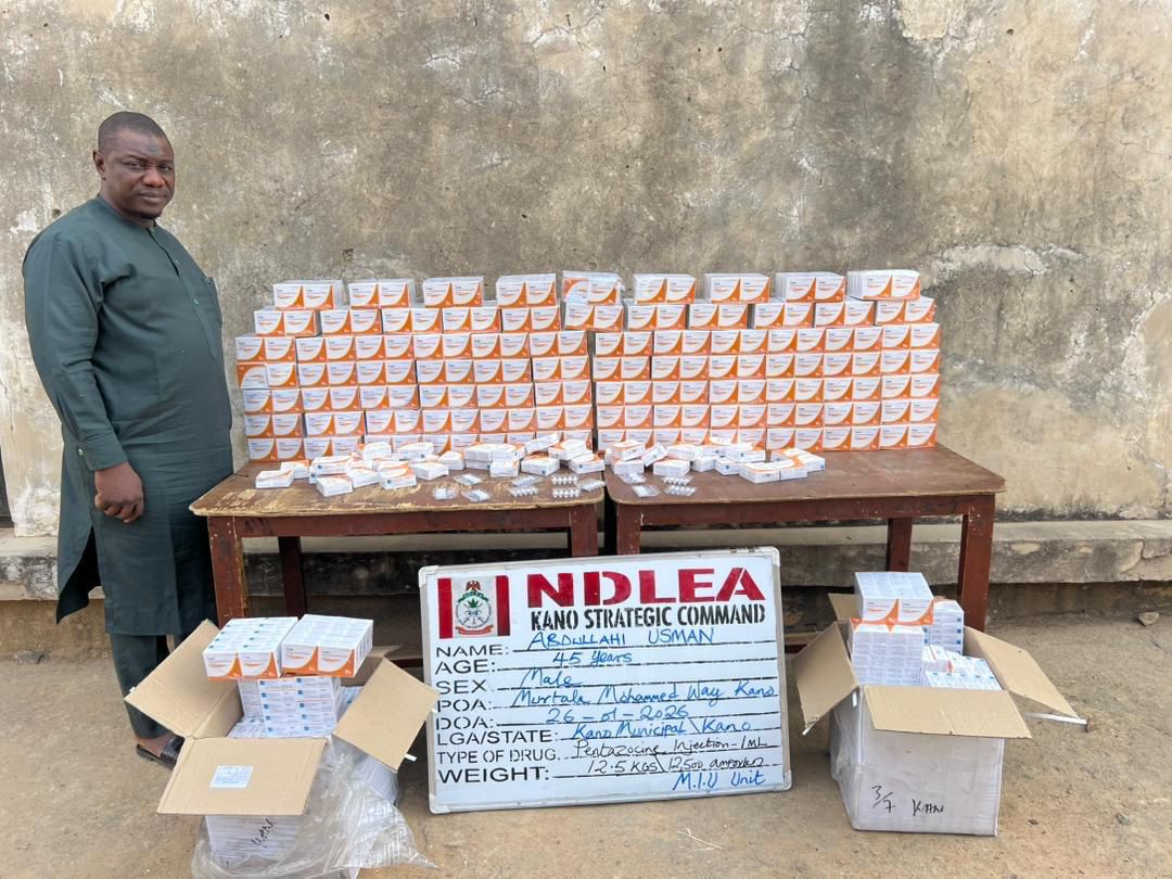 At least, two suspects: Tunde Ogundele,39, and Soji Elegbelye, 46, were on Monday 26th January arrested at Eleyewo community in Akure North area of Ondo state, in connection with the seizure of 473kg skunk, while NDLEA operatives in Kano on same day nabbed Abdullahi Usman, 45, at Murtala Mohammed way, with 12,500 ampoules of pentazocine injection recovered from him. Not less than 4,390 pills of tramadol were seized from another suspect Musa Shuaibu, 42, when he was arrested in Gaya area of Kano on Tuesday 27th January.