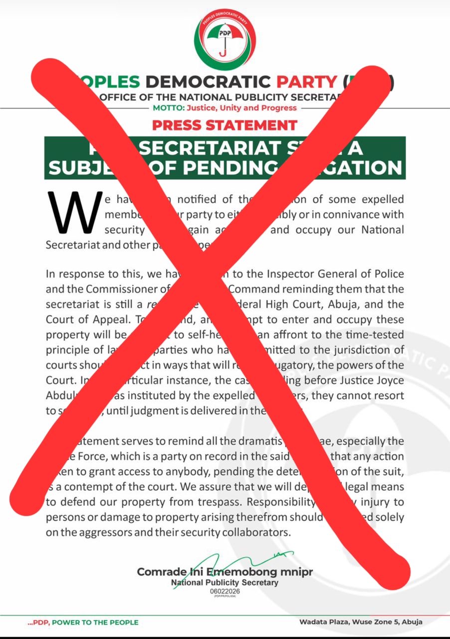 Let us state clearly and without equivocation: no individual, imposters, or self-appointed structure within the Peoples Democratic Party has the authority to determine which court processes deserve obedience and which should be treated with contempt. That power resides solely with the courts and the relevant statutory authorities, not with press releases, not with threats, and certainly not with emotional blackmail.
